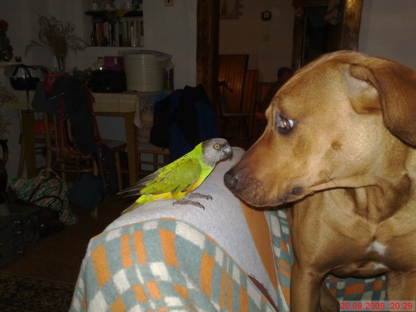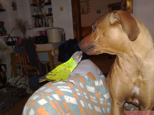 Rikoušek je můj malý barevný kamarád, který se mě vůbec nebojí a společně trávíme některé víkendy na chalupě. Bohužel naše paničky nevidí moc rádi, když se oba trochu rozvášníme a začneme se honit. Ale pusinky ty si dávat můžeme (i když pořád slyším, Moni opatrně, je malinkej!!....a to je přitom starší než já)
